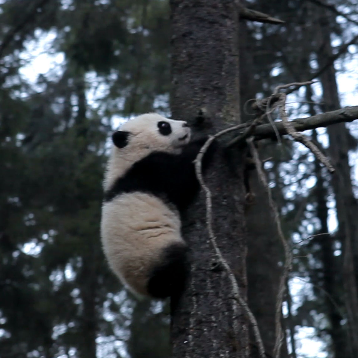让母兽掌握野外育幼技能,幼崽形成独立生存能力,减少对人类的依赖。产后育幼训练时,禁止人类直接接触幼崽,让“草草”独立完成哺乳、舔舐清洁、移动幼崽等行为,培养母性本能。学习爬树、识别可食用植物、躲避危险。淘淘6个月到1.5岁,进入到野化训练,科研人员仅通过远程监控观察,停止人工补充食物,让“草草”带领幼崽自主寻找食物和水源。让他们去适应复杂环境挑战。