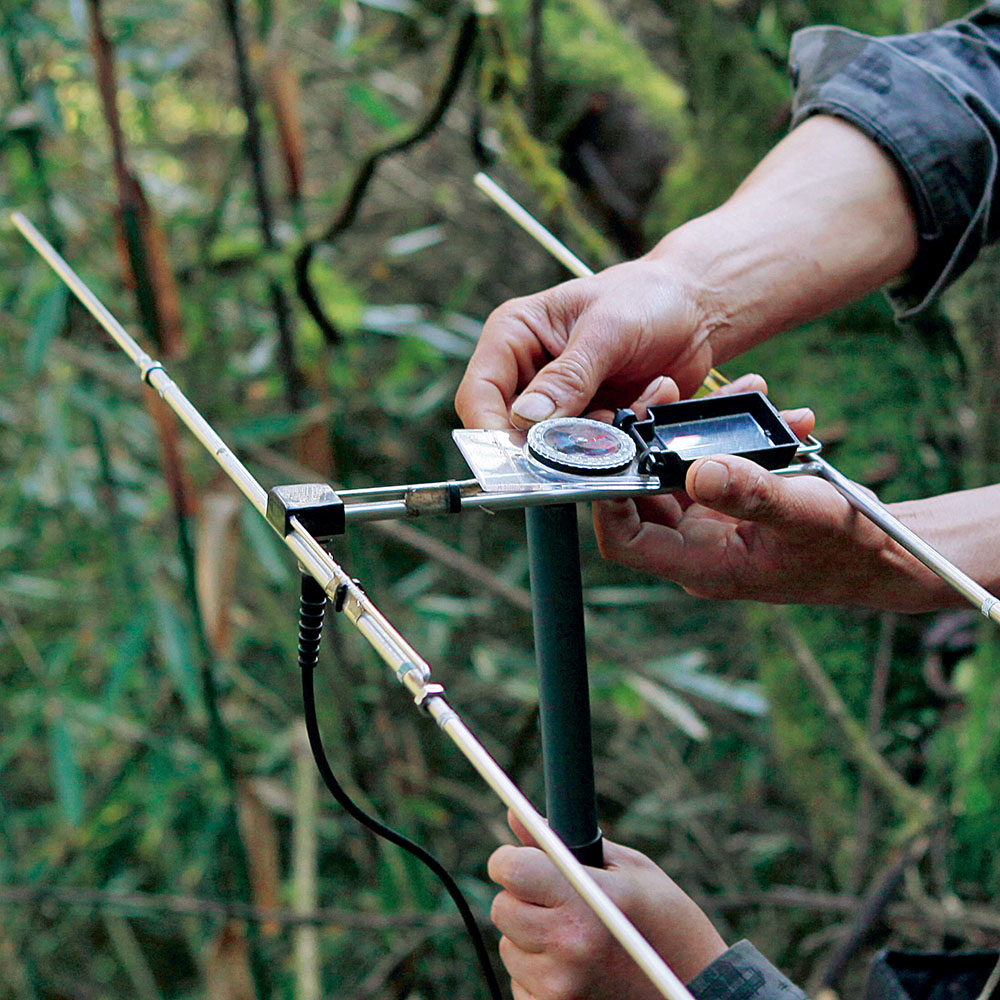 从“淘淘”放归之时,对“淘淘”的监测工作随即开始。日常的监测主要是“打点”,监测人员从三个不同位置用接收仪器搜寻“淘淘”的无线电信号,从信号强弱判断其方位和活动状态,用罗盘测量方位角并记录,最后在电脑上将“打点”处的坐标和方位角带入公式计算出“淘淘”位置的坐标。除此之外还要对“淘淘”新鲜粪便采集和野外搜索、采食场竹子样方调查和生境调查、采食量调查以及红外相机布设。通过多维度监测评估放归成效,为后续野化放归计划提供数据支撑。